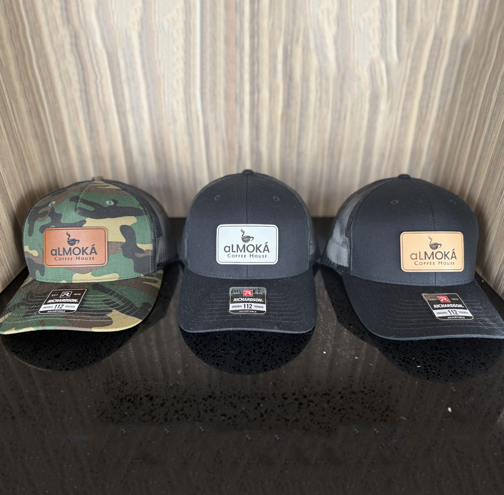 Top off your look with our signature Almoka hat — a sleek, comfortable cap that reps your love for great coffee and culture. Perfect for sunny days, cozy vibes, or your next coffee run.